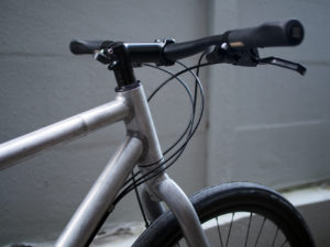 今どきあんまり見ない攻め攻めなステムの角度ですw